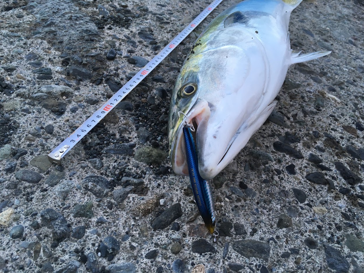 潮の流れのせいか今年1度目の丸太ブリより小さいのにも関わらず、ファイトは厳しかった気がします
