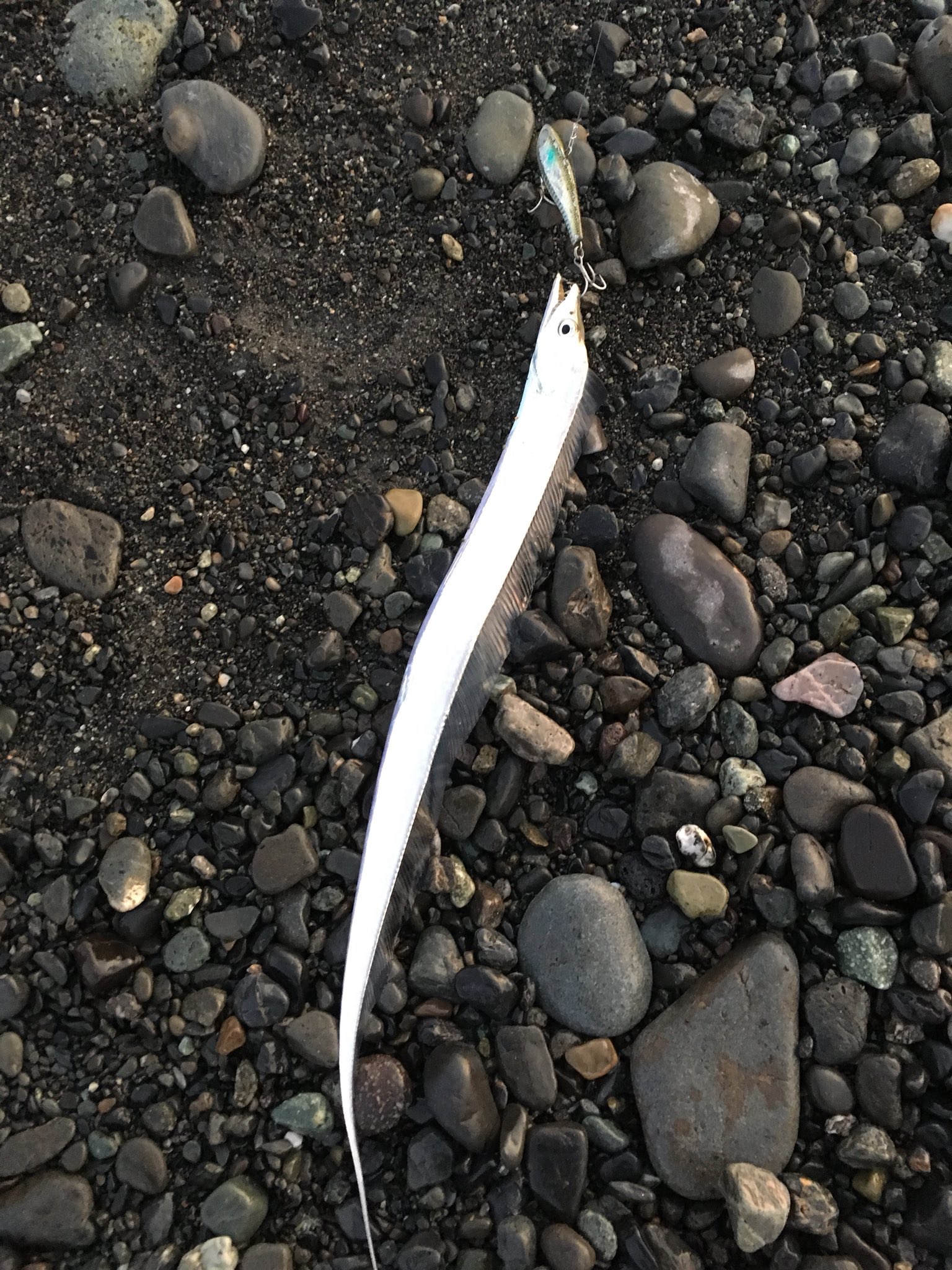 ちょっとだけ明るくなってきたタイミングで小さいがコノシロらしきベイトボールが波打ち際を泳いでいる