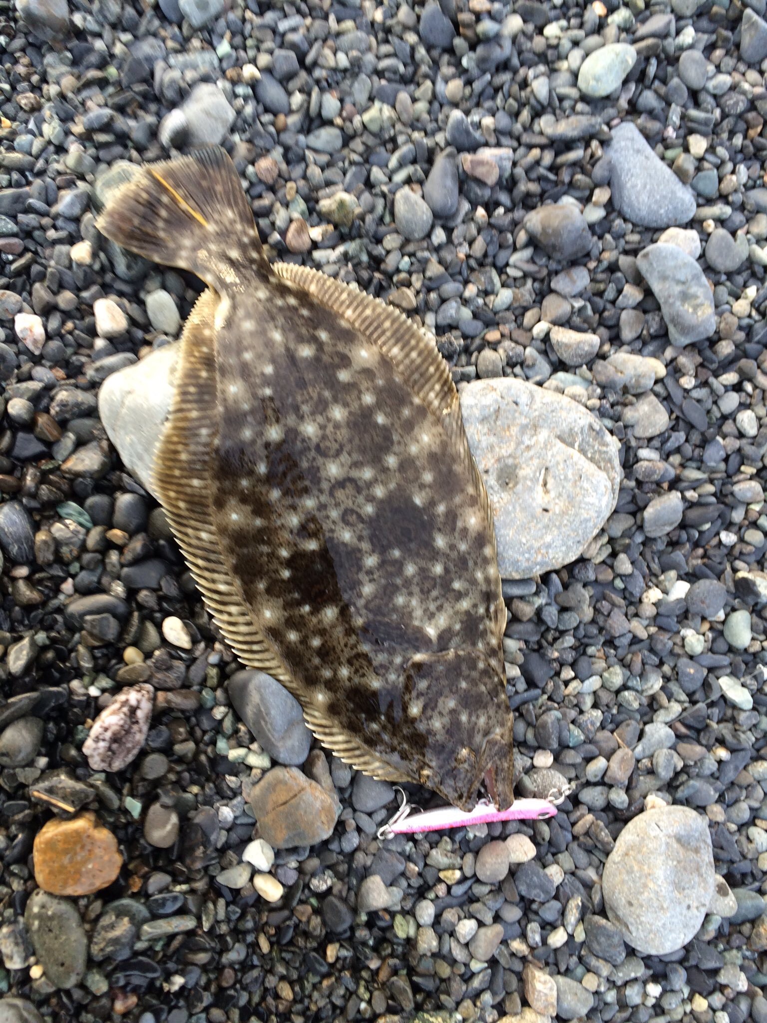 ヒラメがはねた。