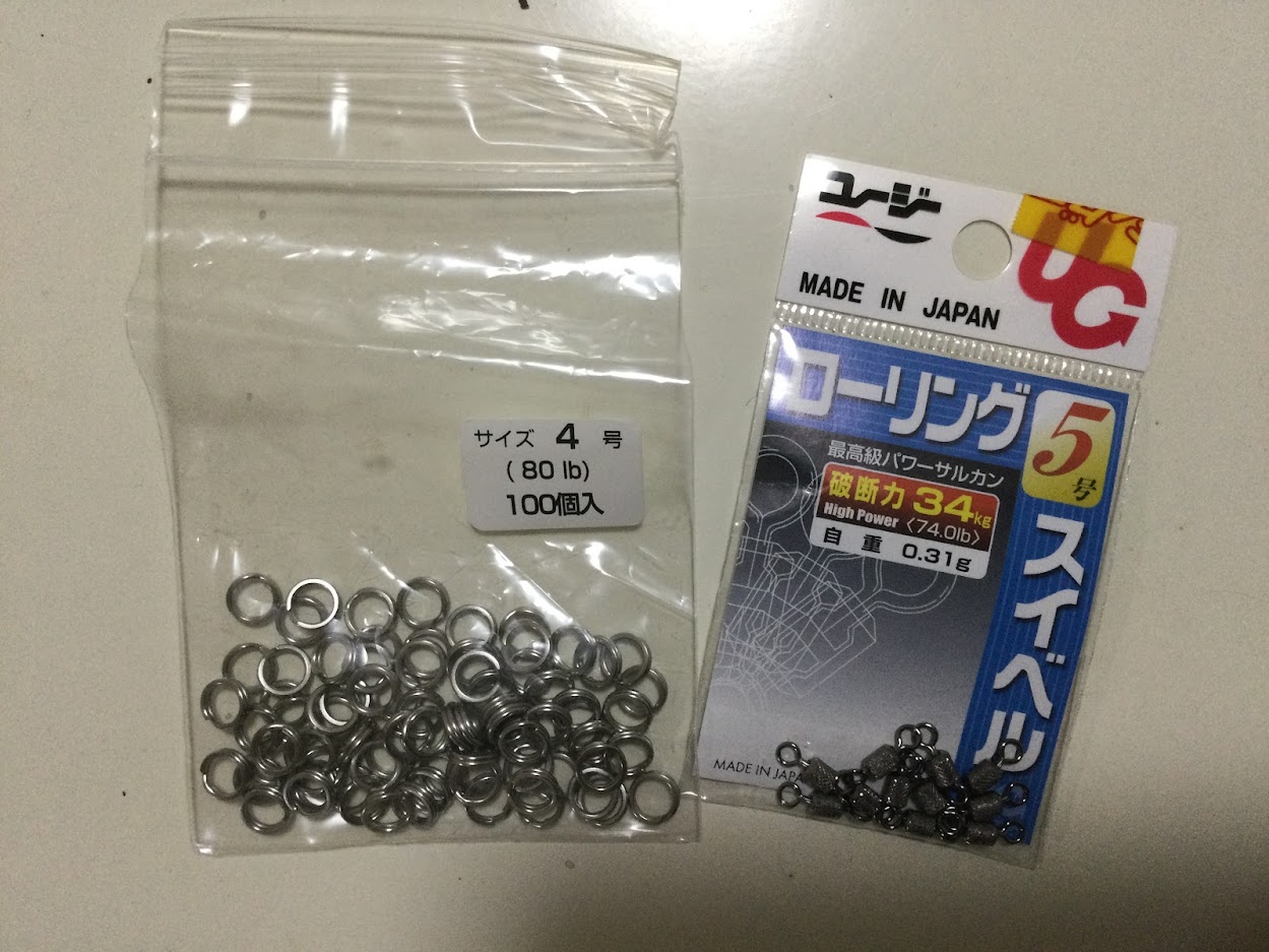 ソリッドリング+ヨリモドシが強度的には有利でしょうが、超大型が出るわけでもないフィールドで、潮流が速く、重いジグを使うのならローリングスイベル+スプリットリングが巻きのアクションを損なわず良い印象です。