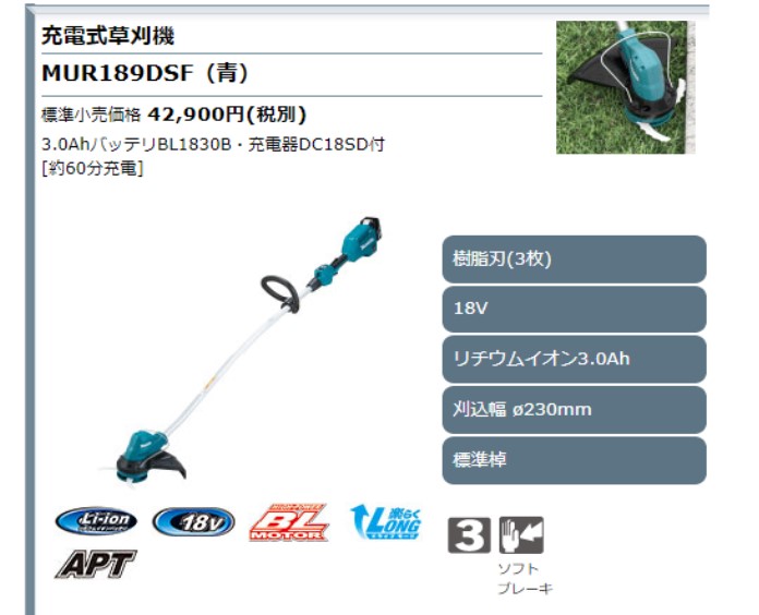 マキタは129平方メートル刈れると言っています